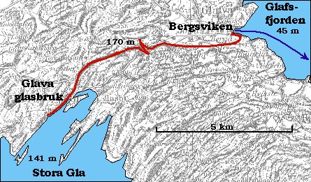 | History | The Glava line went down from Glava glass factory to a small harbour in Bergsviken at the lake Glafsfjorden, 50 km west of Karlstad. Goods were transported by boat and then railway. Line length 9 km, gauge 750 mm, operation 1886-1938. It had one zigzag as the track passed a mountain ridge. The zigzag length was only a few hundred metres. The line is a nice example of early Swedish railways connecting an industry or mine to a nearby harbour, see my webpage History of Early Swedish Railways. | |