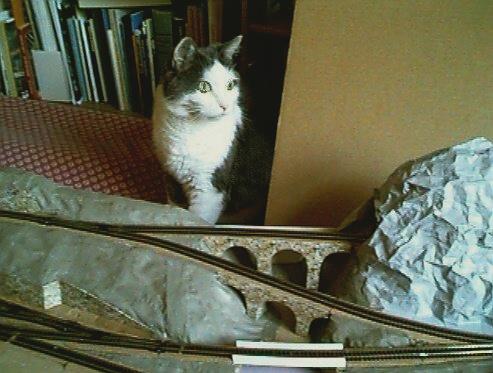 The left section with the lower station and its two tracks, one for passenger cars and one for goods cars. There will be a station building in front of the tracks and a "large" forest on the hill side. In the background Chrisse asleep! > For cat lovers only < | |