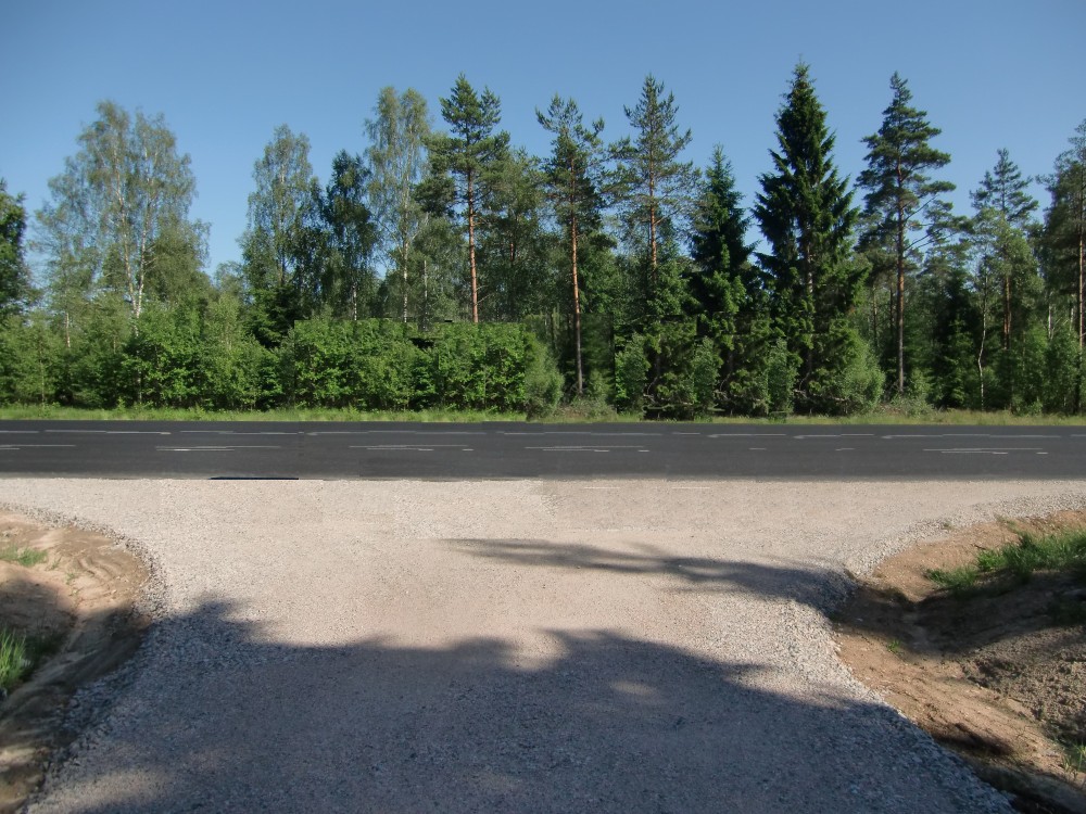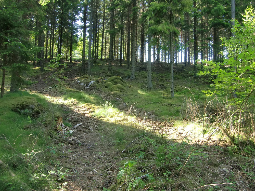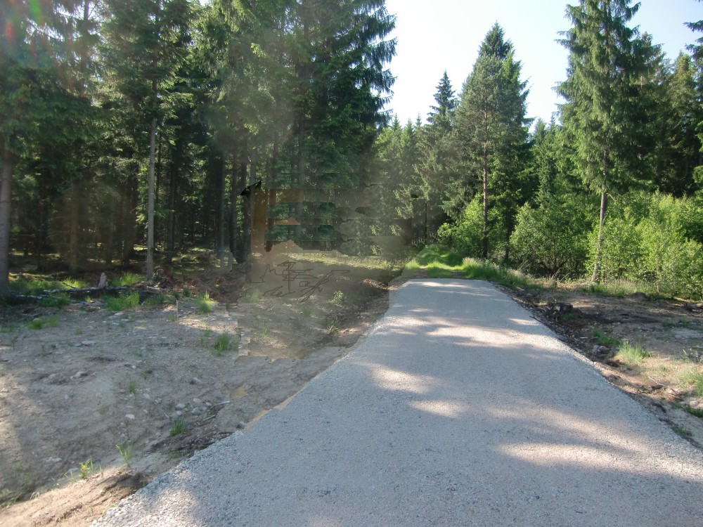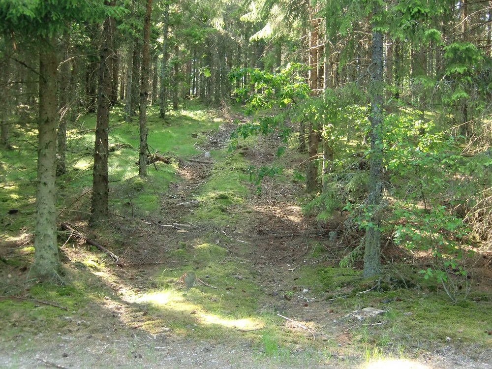 Vy mot åsen, men än ser man inte dess sluttning. Nytt grus på stickvägen!