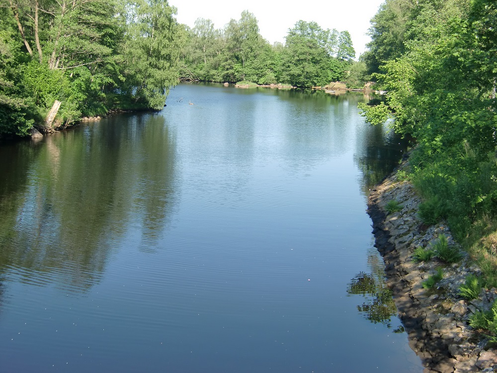 Vattenspegeln nedanför dammen var riktigt stämningsfull, som en damm i en engelsk park. En kanotled var markerad förbi.