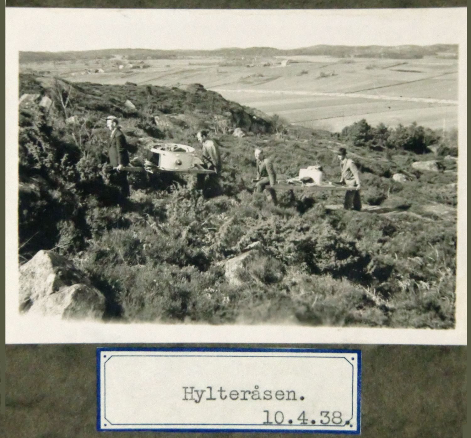 Bild 8. Hylteråsen. 10.4.38. Fyrstrålkastaren bärs upp på Hylterås