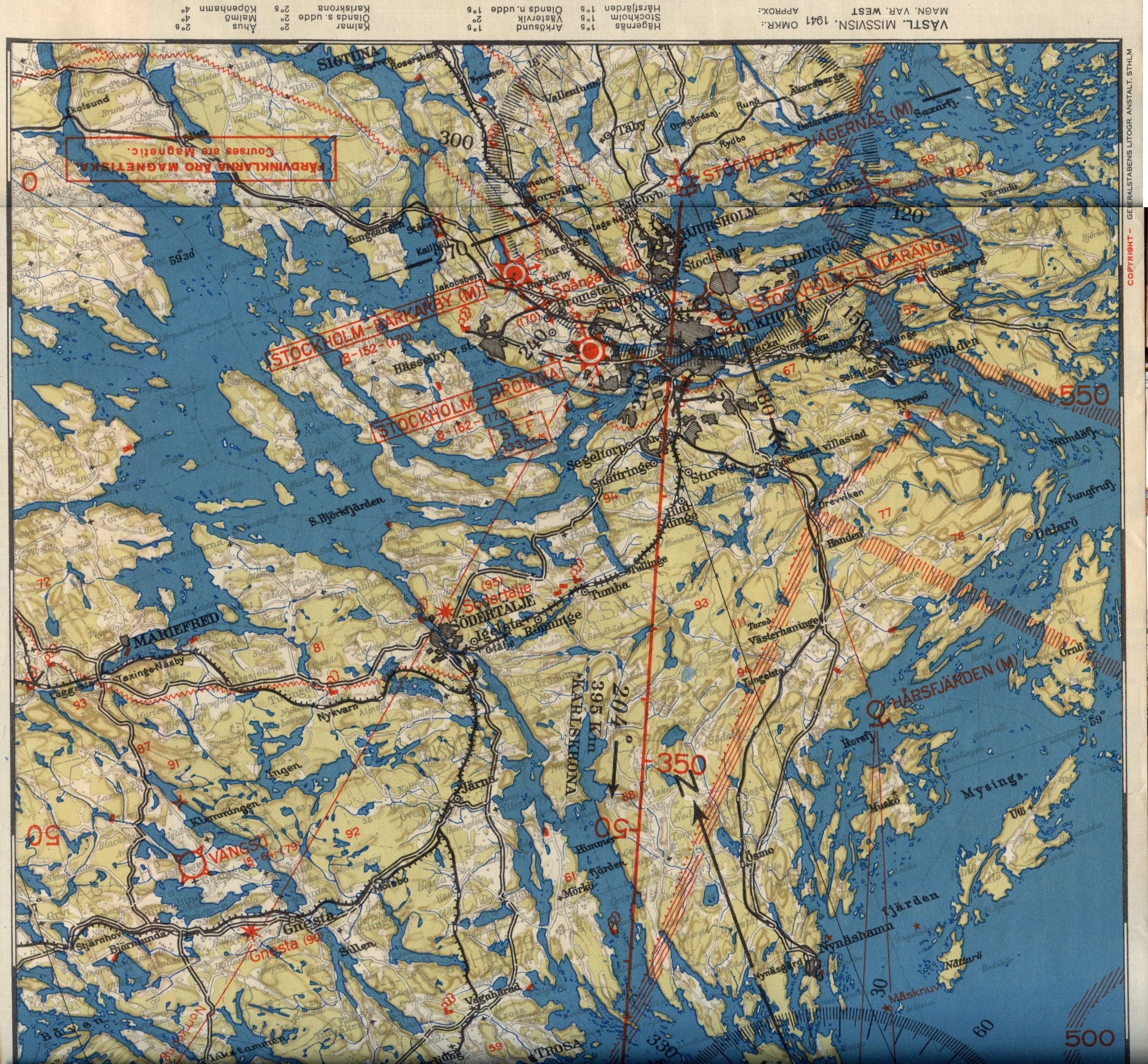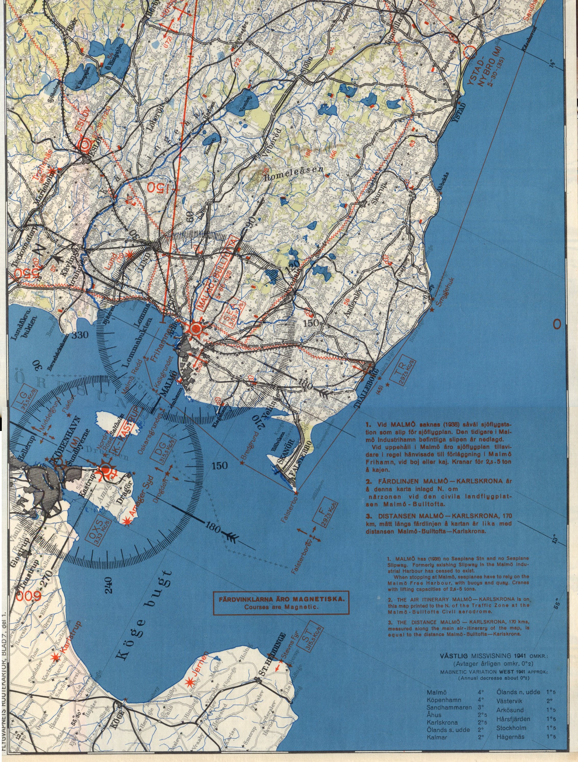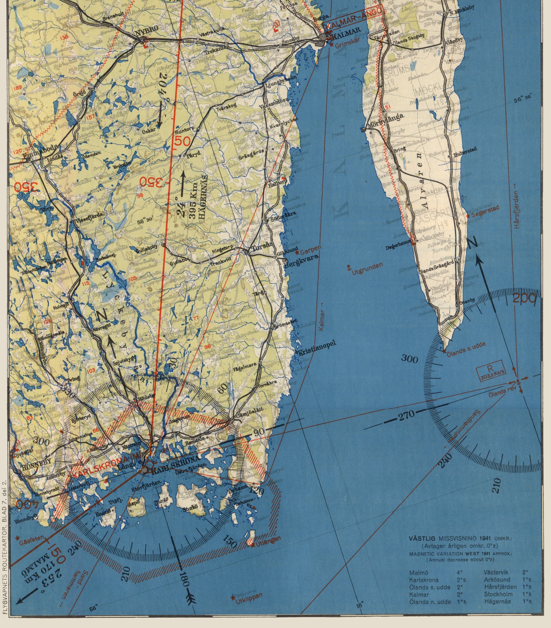 | Flygvapnets Routekarta nr 7. Stockholm - Karlskrona - Malmö, Generalstabens Litografiska Anstalt, 1938.