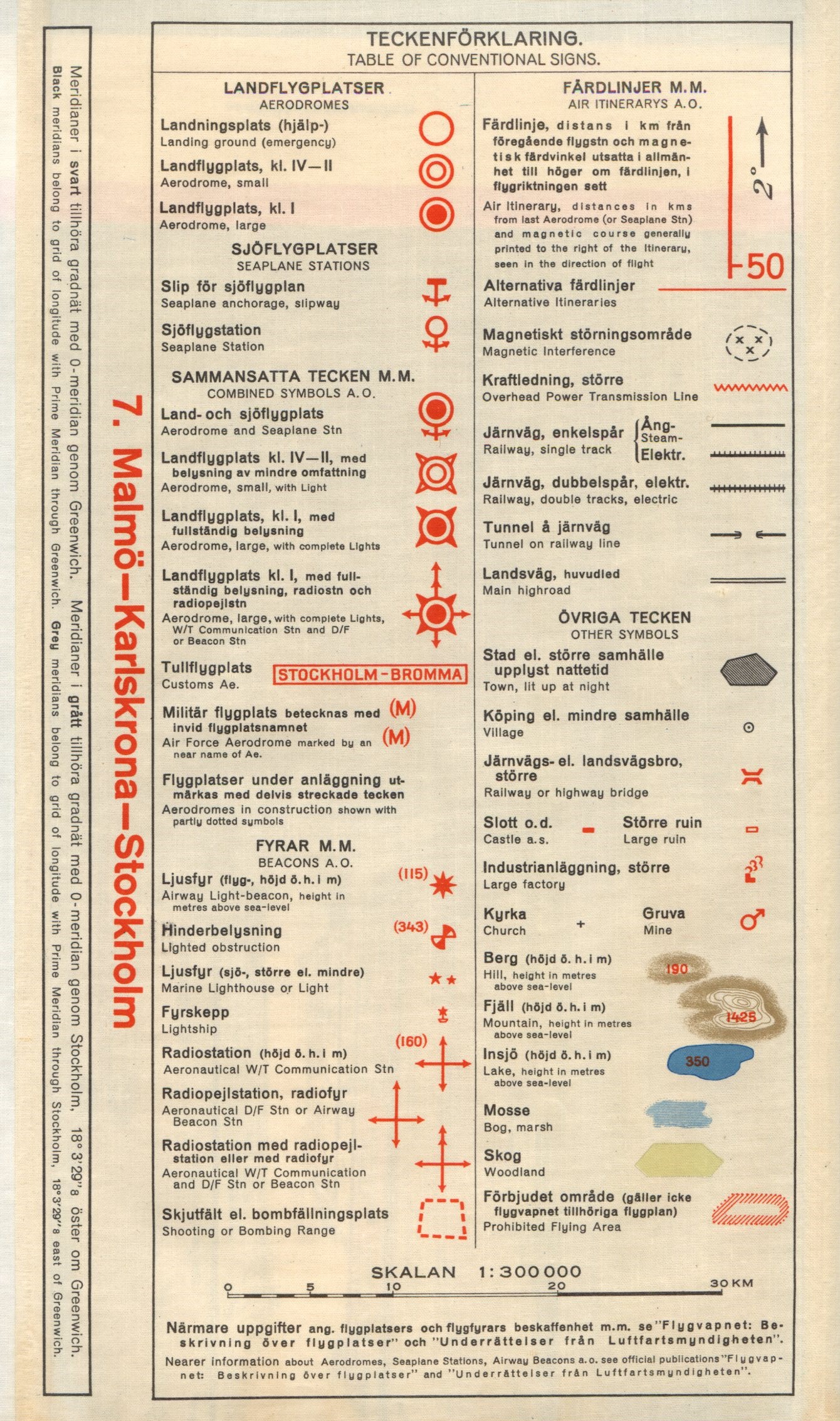 Teckenförklaring. Legend. Flygvapnets routekartor.