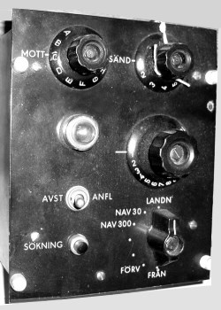PN-50, foton FV-museum Manöverlåda för piloten i A32A och J32: T.v. Manöverlåda för navigatör i A32A. T.h. Manöverlåda i J35A (AEF-foto). Olika form, likartade knappar. J35 senare versioner hade PN-59, med lite annorlunda manöverlåda.