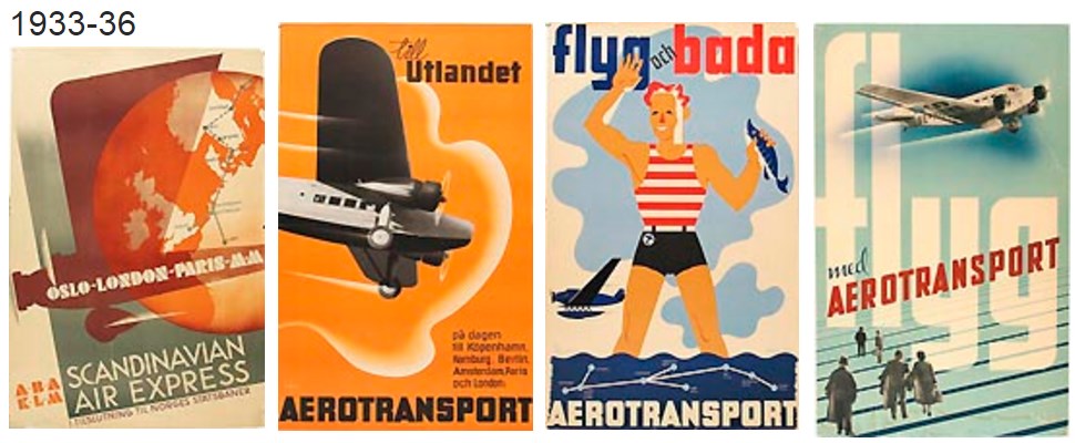Både ABA Aerotransport och finska Aero OY gjorde reklam för flygningar med affischer.