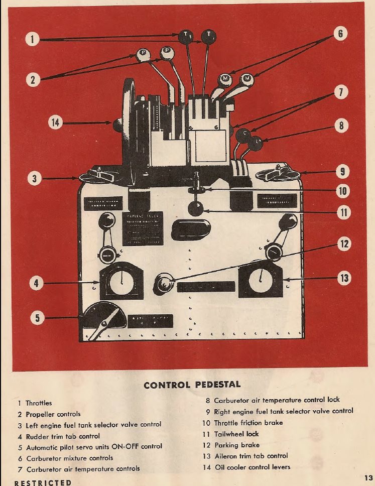 Vill du läsa mer om hur en DC-3 hanteras så läs "US Pilot Training Manual for C-47 Skytrain" från år 1945. Pdf-fil om 34 MB som inleds med en genomgång av de olika reglagen i en DC-3 / C-47. Jag har laddat ner filen från aoptero.org • C-47-Skytrain-Manual.pdf, öppnas i ny flik. Spara gärna ner den på din dator. |