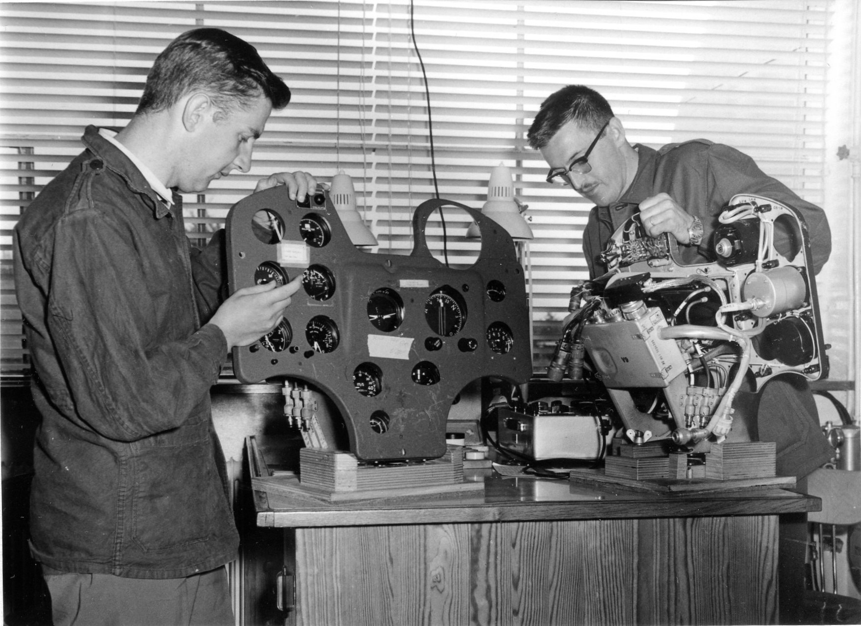 | Foton från Televerkstaden. A32 Lansen 1. A32 instrumentpanel, framifrån o bakifrån ![]() |