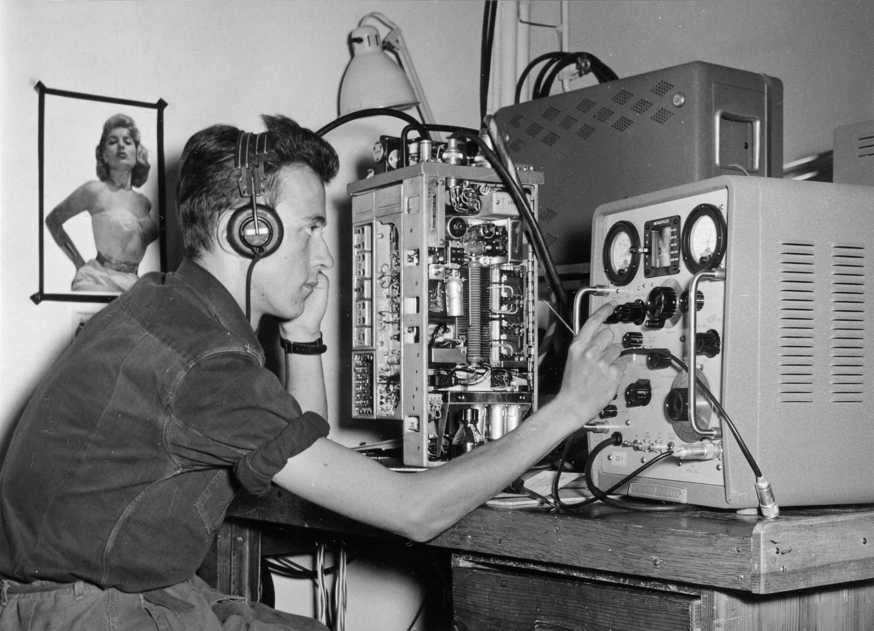 4. t.v. Navigatörens panel för spaningsradar. t.h. Sändar/Mottagar-enhet (i nos), oscilloskop ![]() |