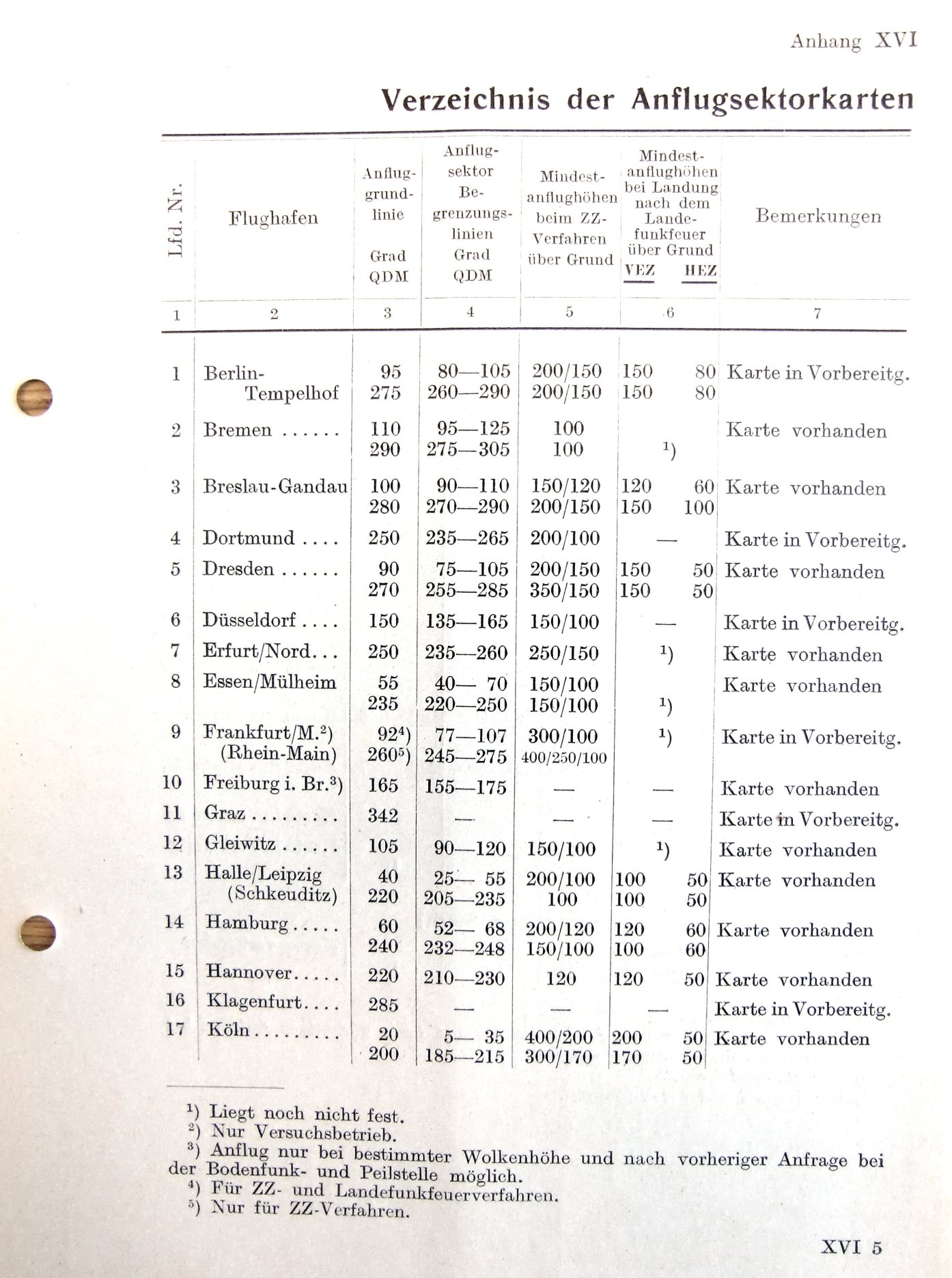 | Anm. Det fanns Lorenz-system vid flera flygplatser, men kartor och anvisningar ej klara 1938. Se förteckning under Länkar nederst. |