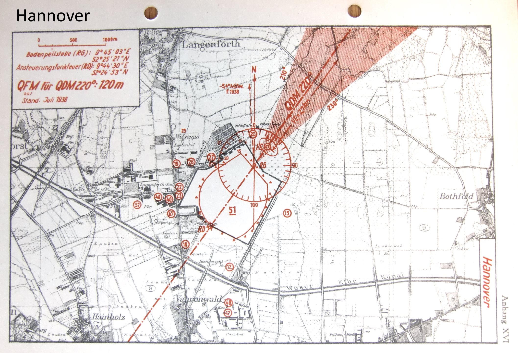 Lorenz system bestod av en riktningssändare i fältkanten (RD på kartorna), en försignal (VE) 3km före fältet, och en huvudsignal (HE) 300m före fältet.