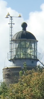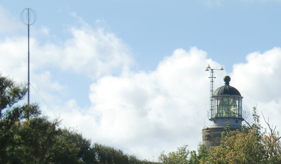 - Mottagarantenner på fyrtornet, tre vita diskar. Sändarantenn i toppen på masten t.v.
