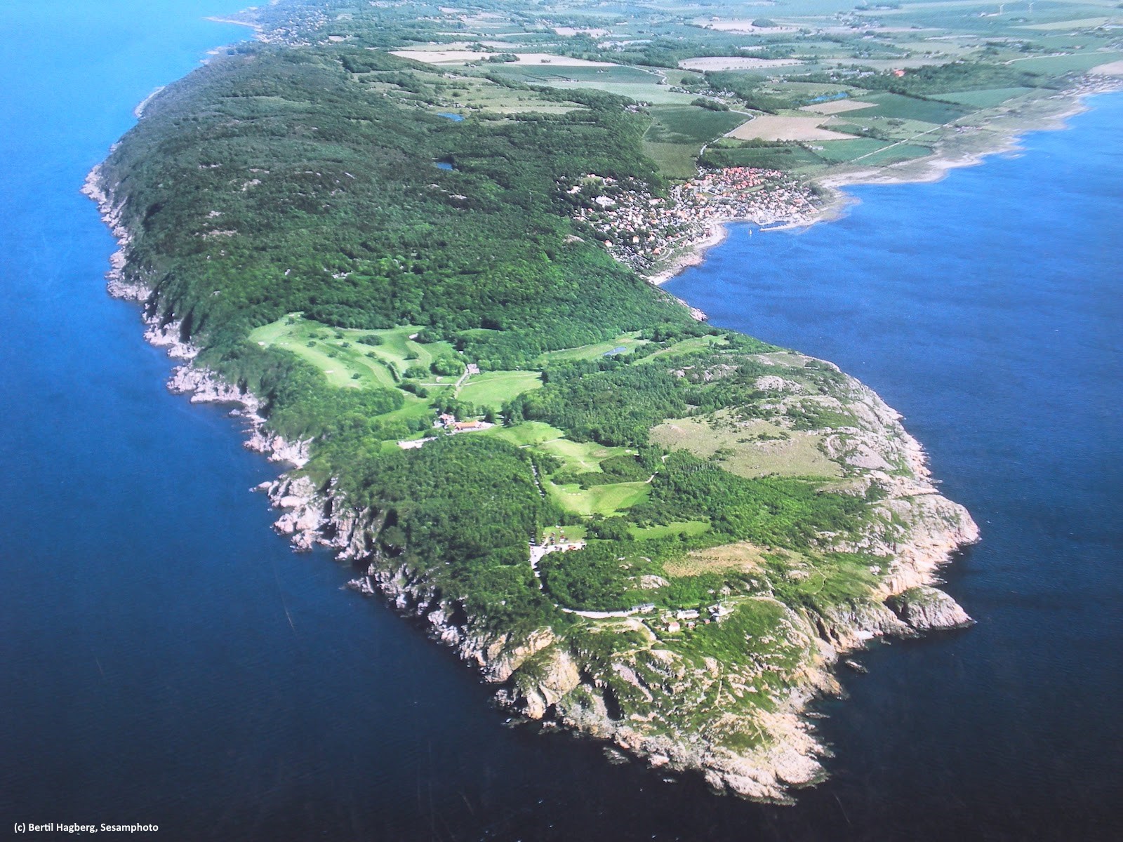 - Ovanför syns Mölle golfklubbs gröna fairways.