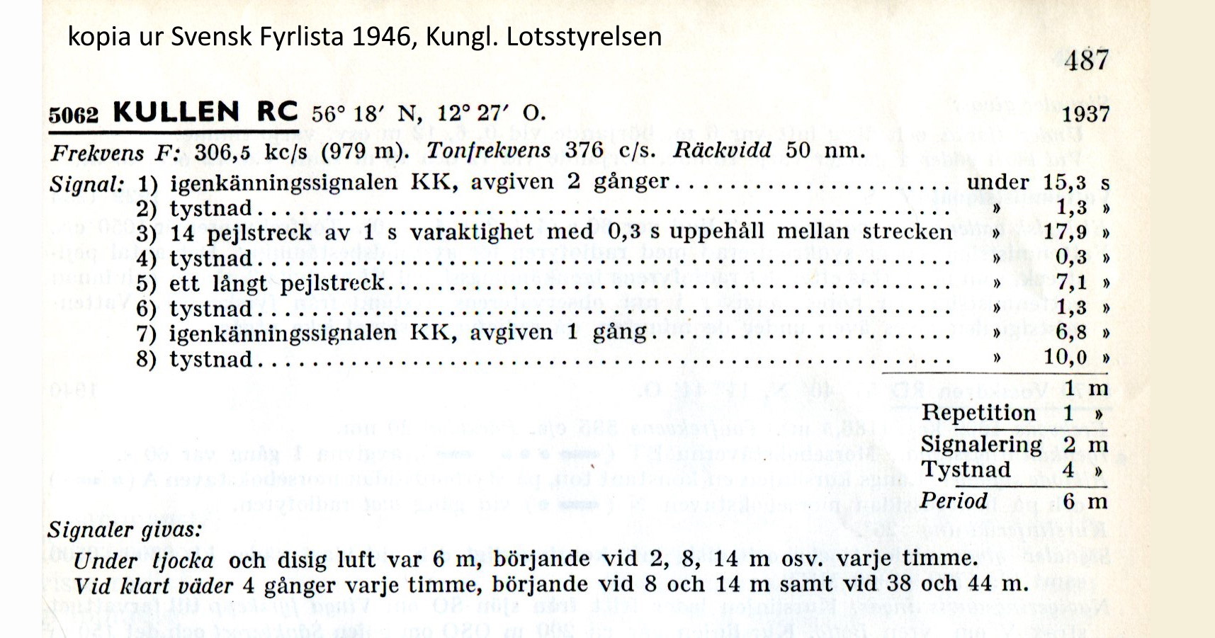 enligt Svensk Fyrlista 1946 och 1965.