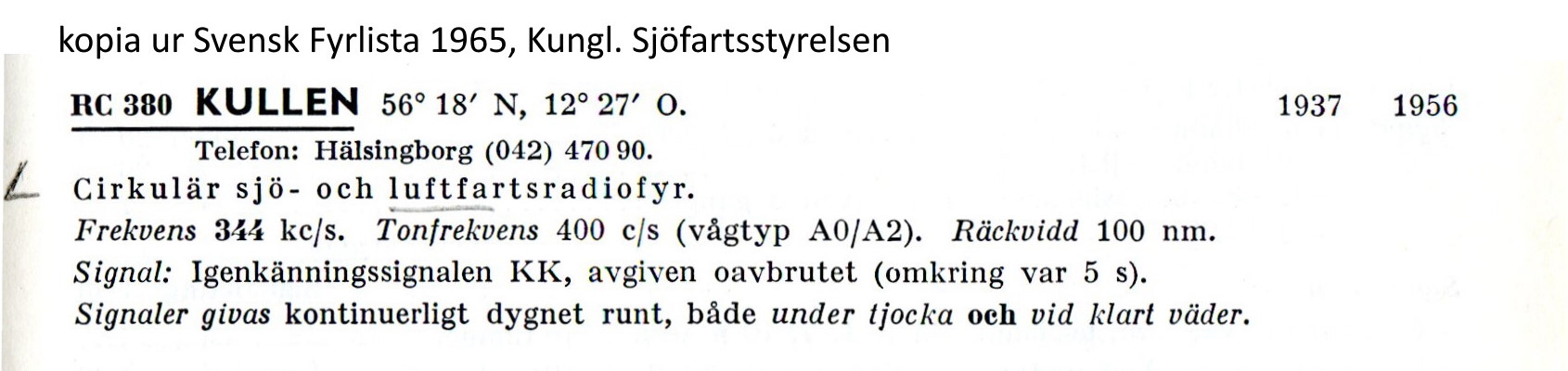• Radiofyrar Kullen - fyr, NDB, DGPS.