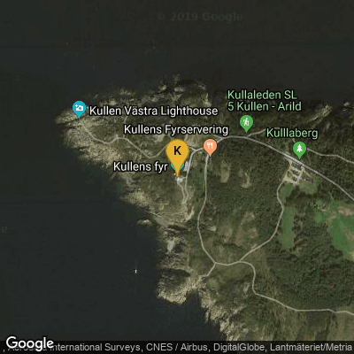 - I nedre delen ser man Kullens fyr (där vägen slutar).