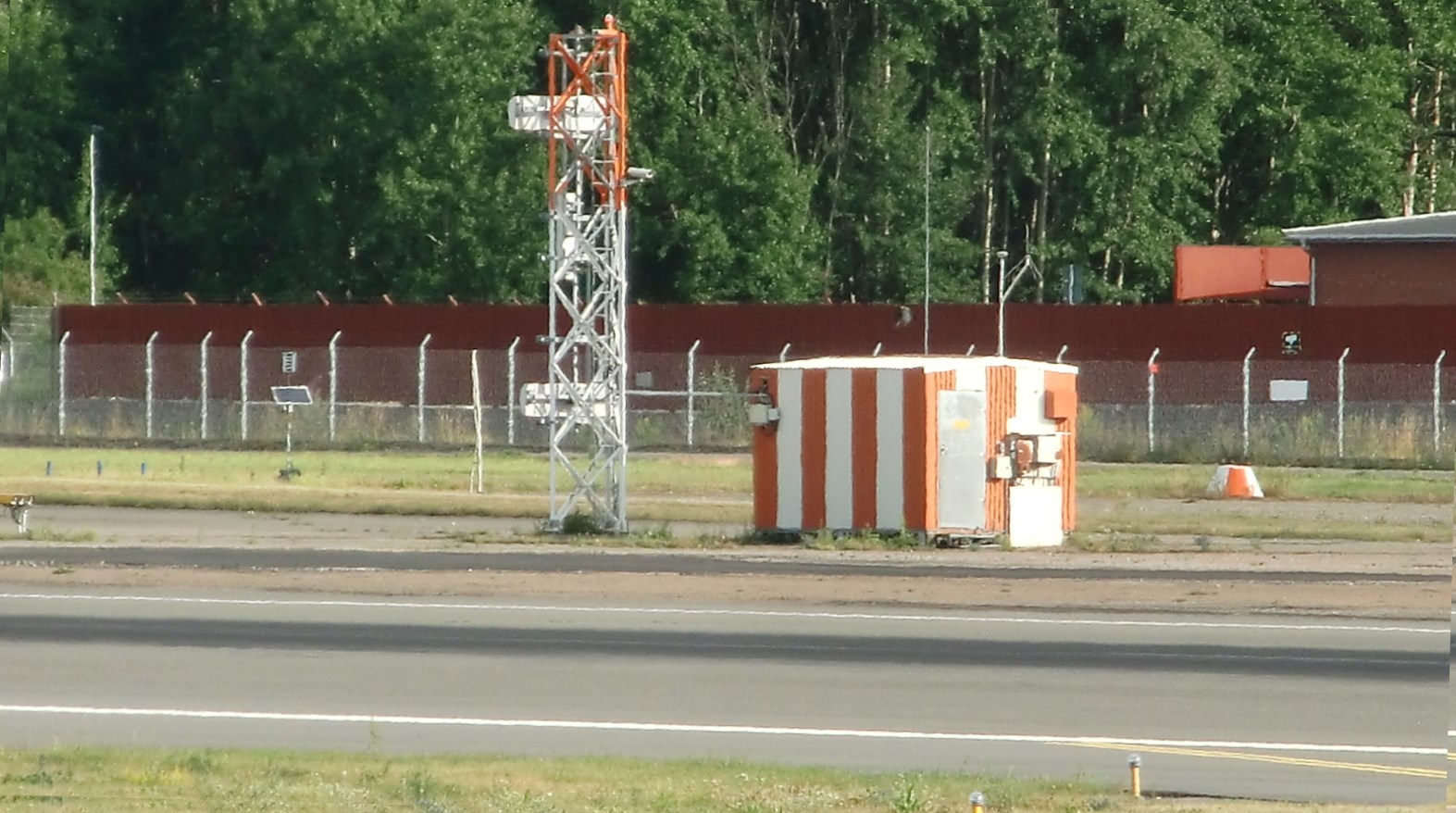 ILS glidbanesändare, GP, för vertikala lober. Står invid banan ca 300 meter in. Foto från Bromma, av Bo Ju.