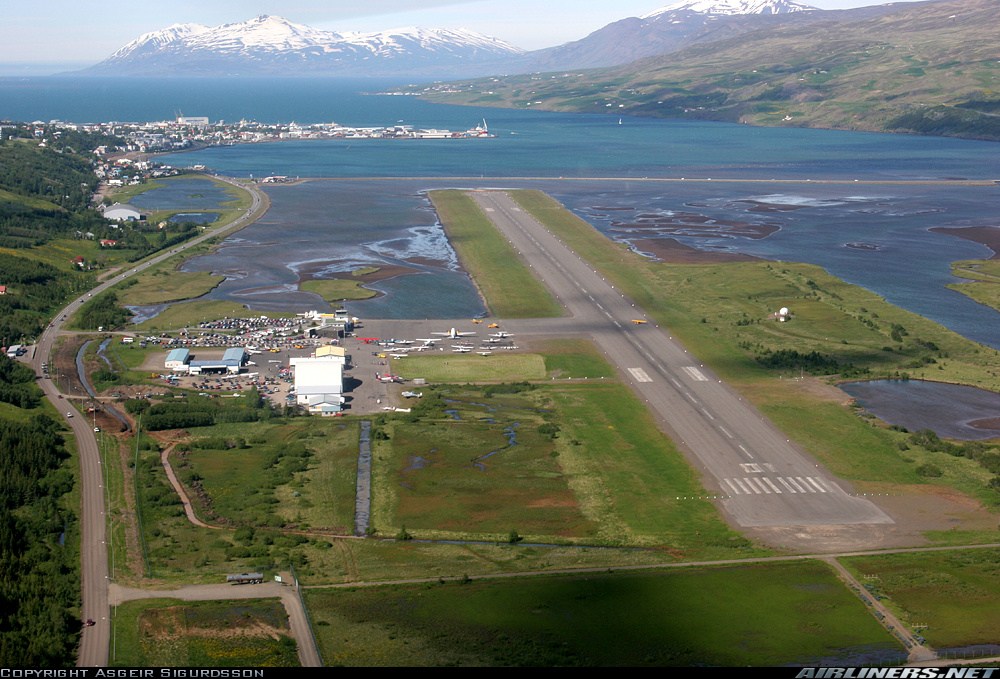 | Akureyri, BIAR - Akureyri är Islands näst största stad med 18.000 invånare. Välutrustad flygplats. - Islands flygmuseum finns här, har flygande DC3! Foto t.h. från flygdag. • Länkar nedan. MSFS: ![]() |