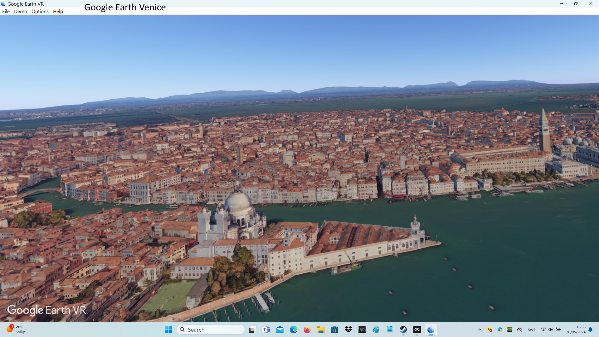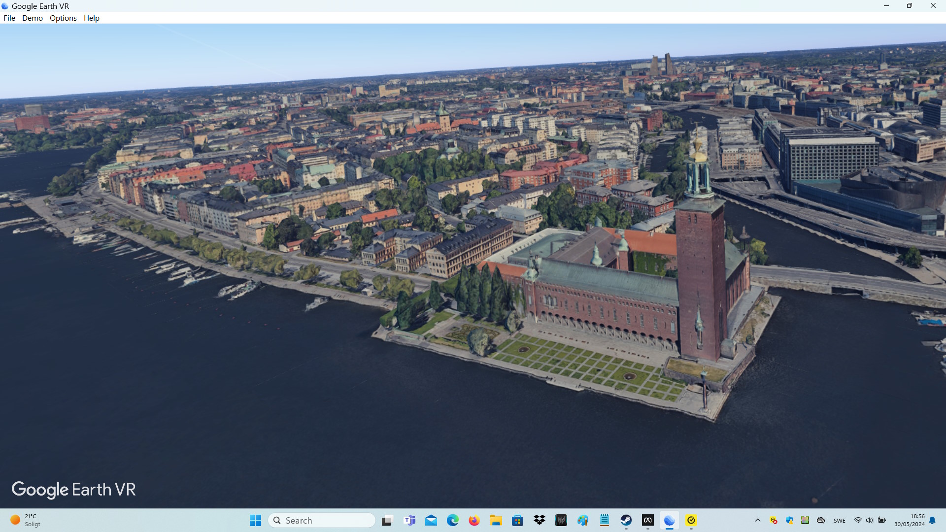 | Lämplig att börja VR med. Du laddar ner i Meta eller Steam, och kör PC-kopplad. Inte en flygsim. Den styrs med VR handkontroller, mus, tangenter. Suveräna scenerier i större städer, som man glider fram över. VR Handhavande: