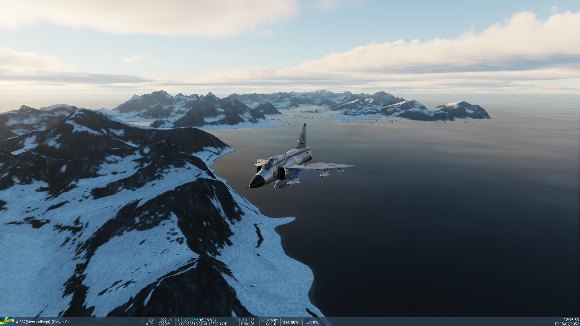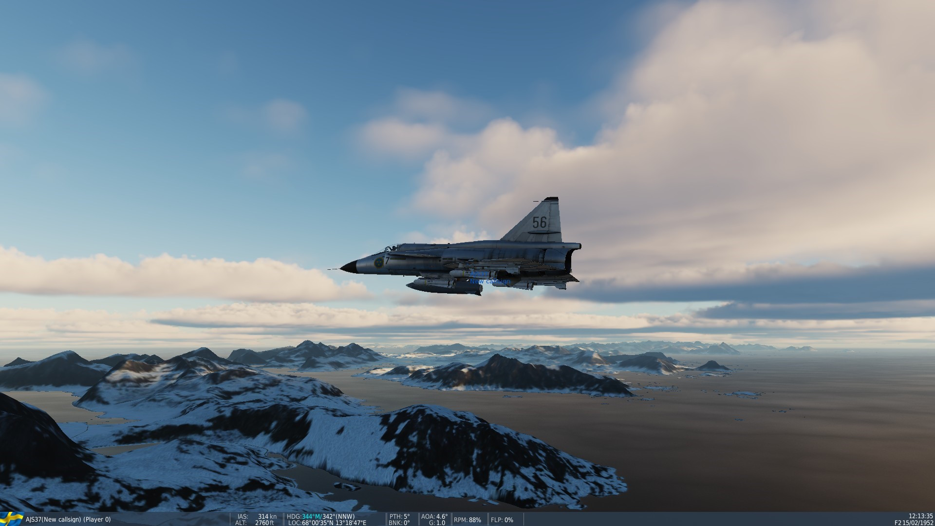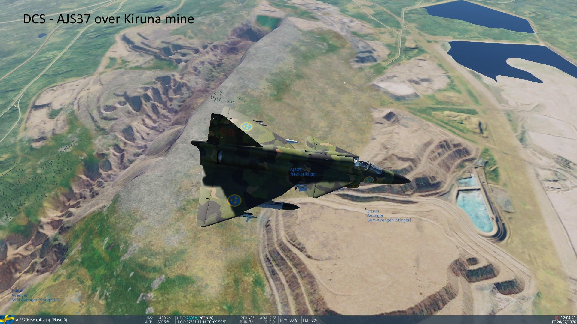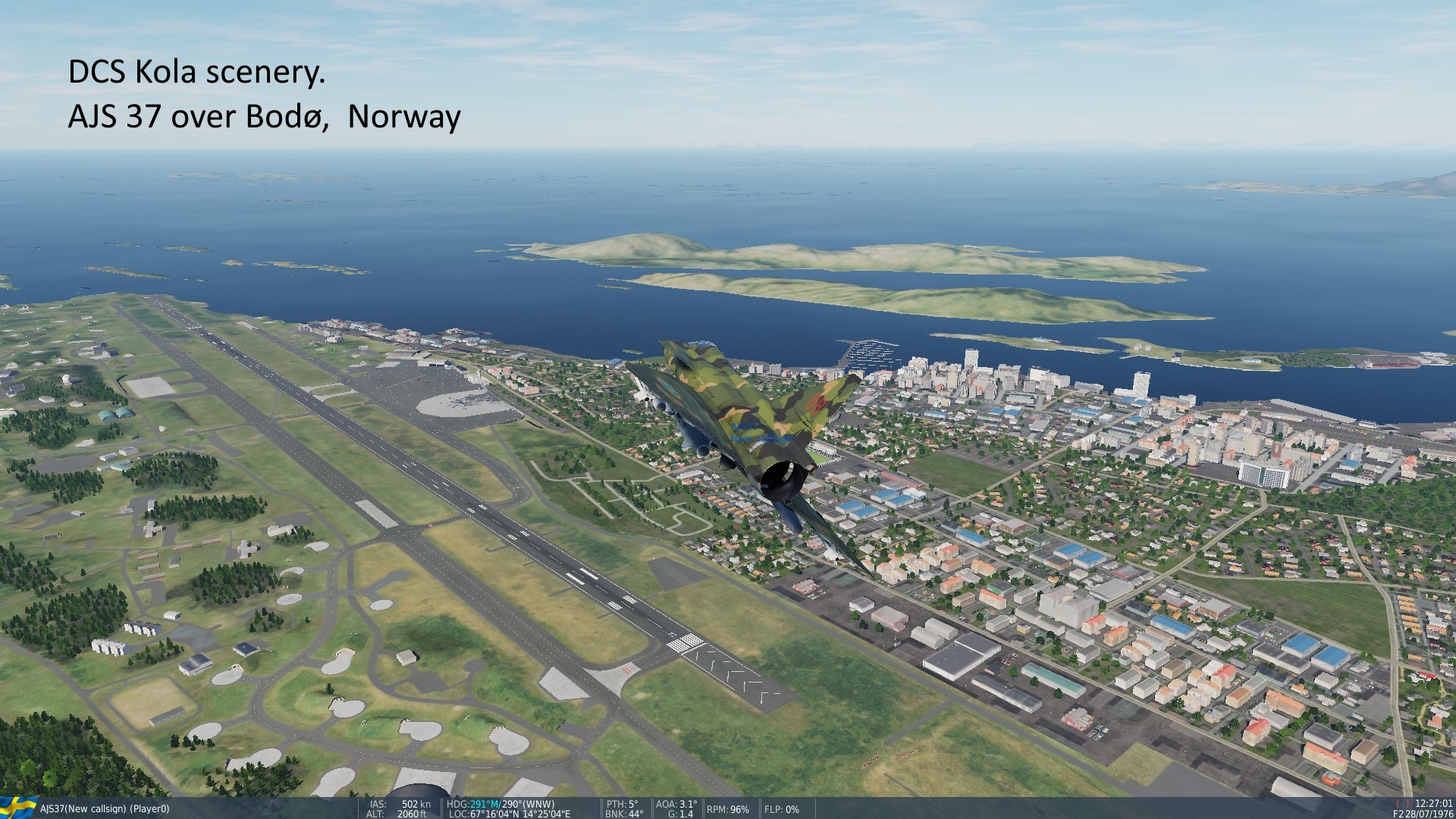 • "Kola", info hos Orbx - Norr om lat 65°: Nordkalotten, Kola-halvön, 130GB. Early Access. Ej för Steam-DCS-ver. SAAB AJS 37 Viggen, kan köpas 30$-60$ (olika rabatter!). En study sim! • AJS 37 Short manual, hos Air Goons (många manualer!) Freeware: SK60 och JAS 39 Gripen, lär vara rätt bra. - AJS 37 och Kola-Nordkalotten