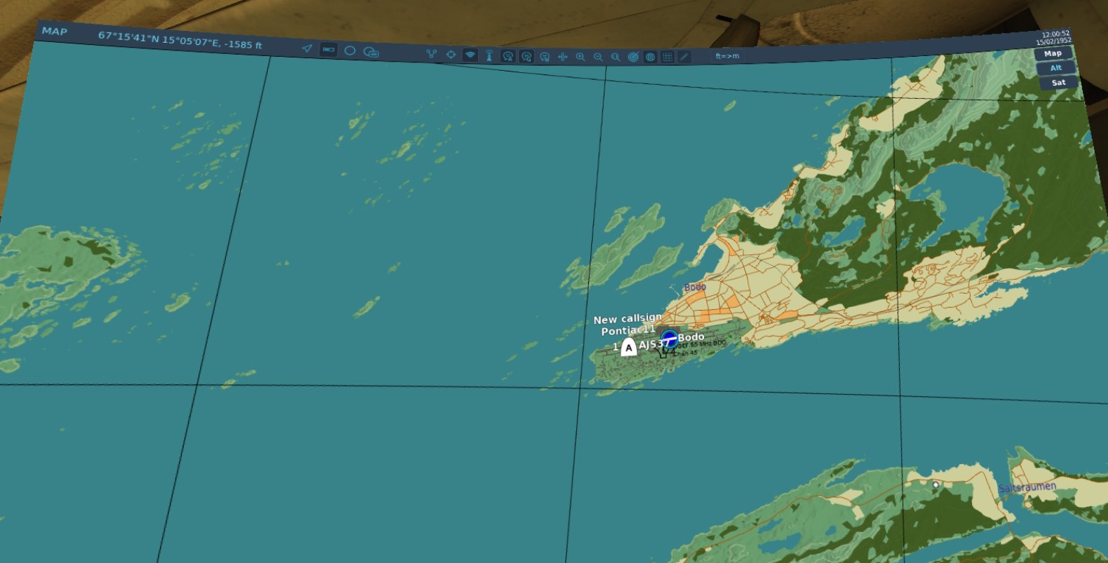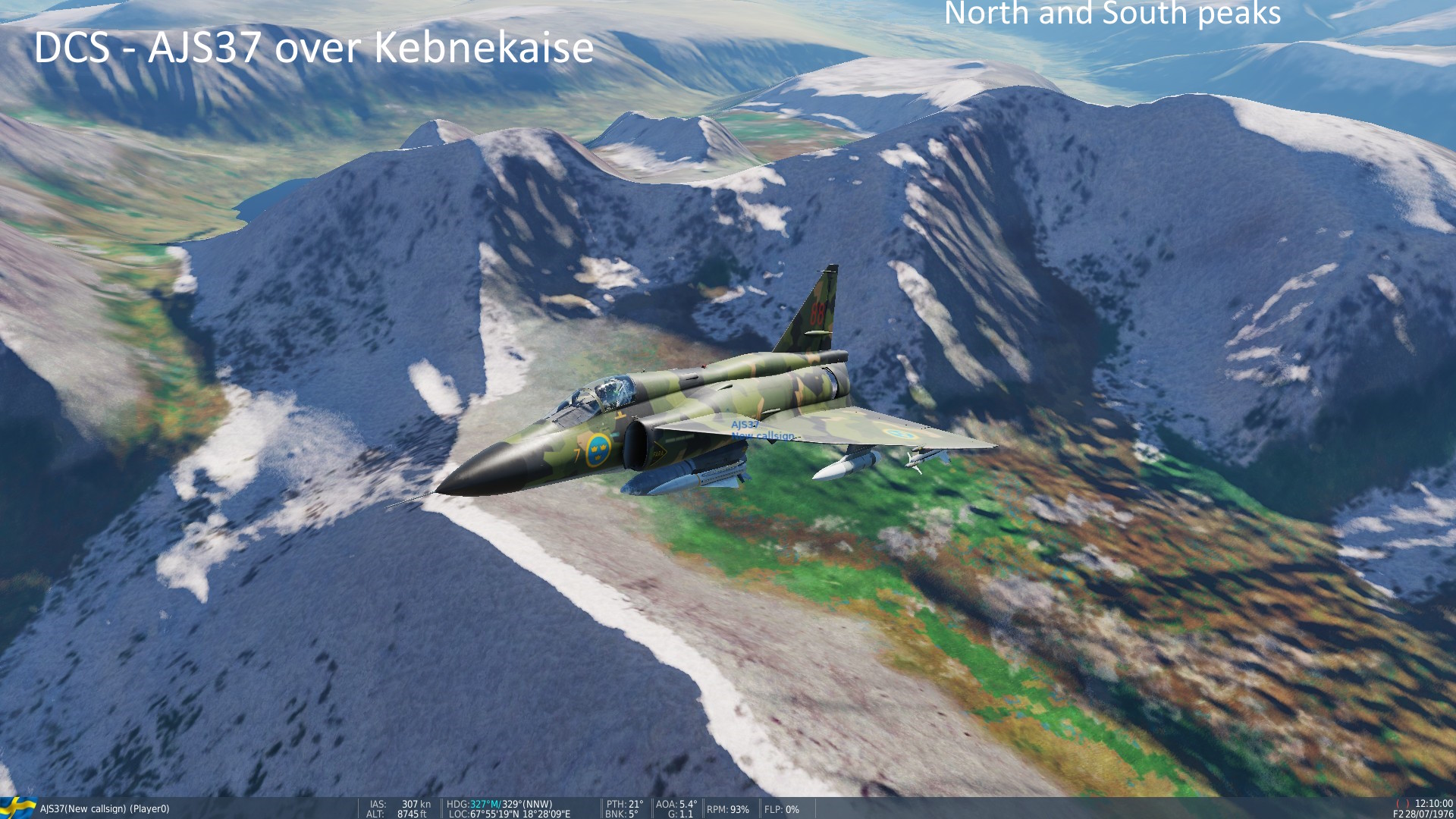 Härlig Provflygning i AJS 37: - Kiruna -> Kebnekaise -> Bodø,Norge - snapshots fås med PrtScr-tangent. - Bilder från Screen-mode.